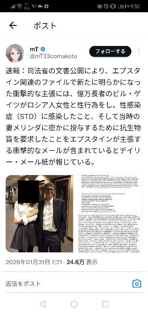 2026-02-01 ■ @一般 ビル・ゲイツにダメージを与える為のプーチンのロシアンハニートラップだったりして😂😂😂 https://x.com/i/status/2017362662615879941